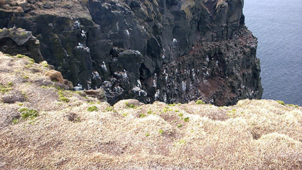 klippevæggen til den anden side. Men hov. Det er da ikke lomvier.