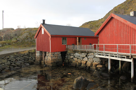 stand på stedet. Jeg bor i et Rorbu. Det er et fiskehus bygget ud