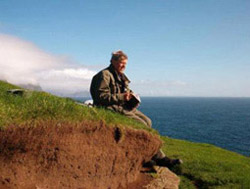 Her sidder jeg højt over bygden på Mykines. Vejret er klart,